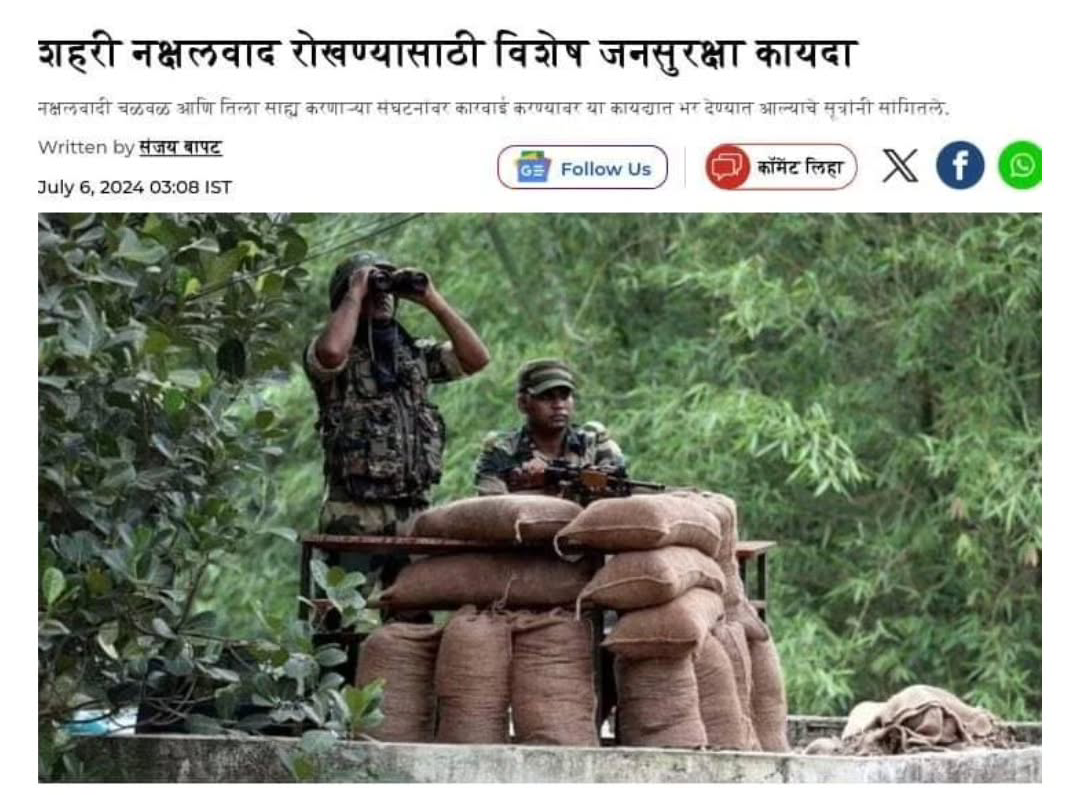 The news circulating for some months, has resurfaced again, that the Maharashtra government is planning to pass the Maharashtra Public Security Act, against the so-called “Urban-Naxalism”